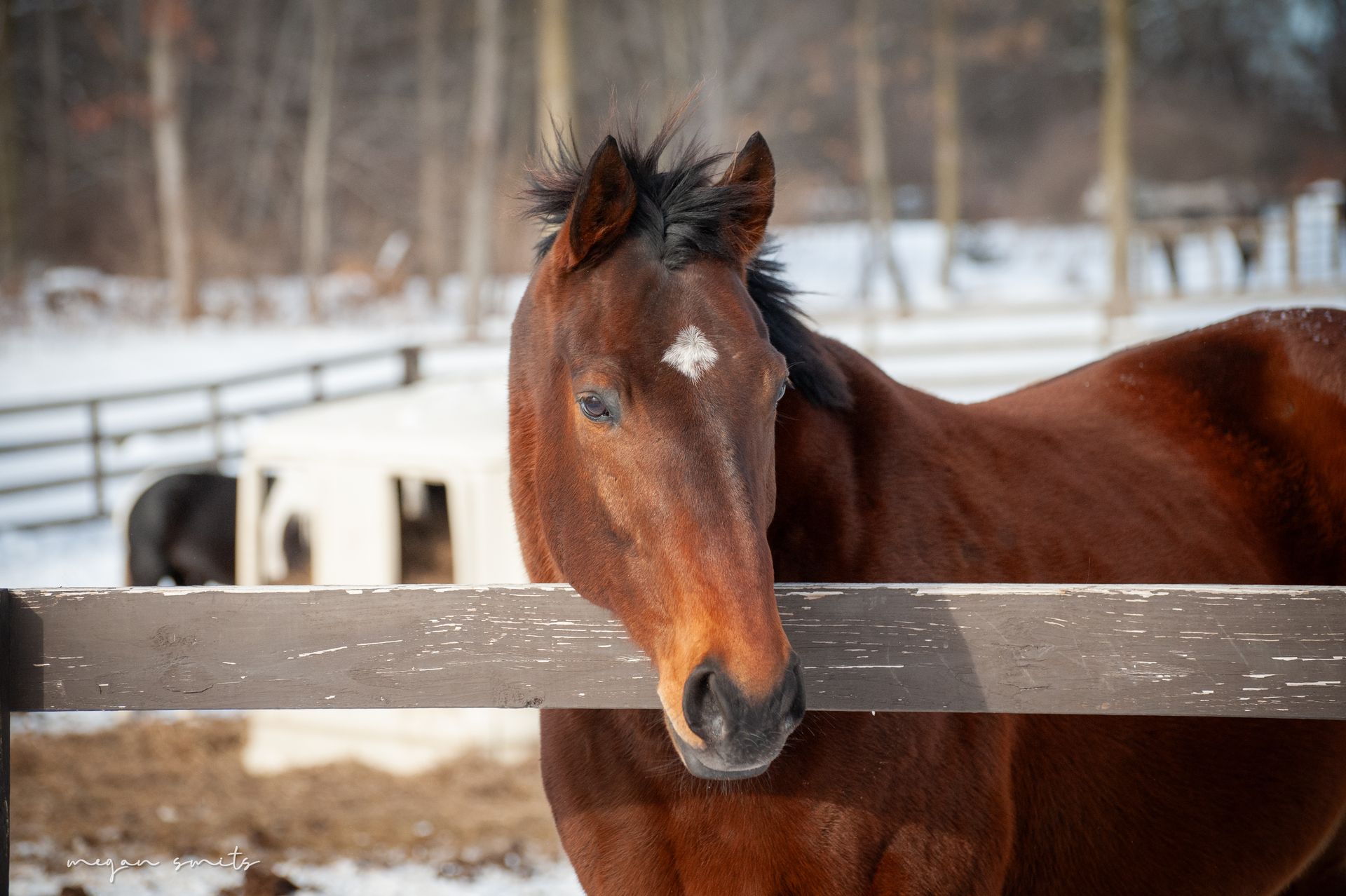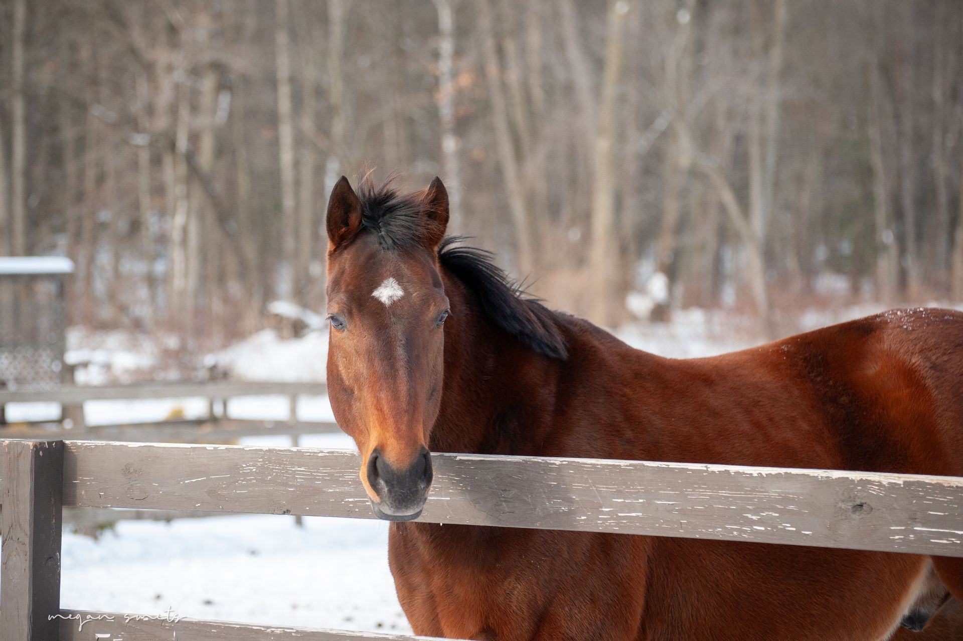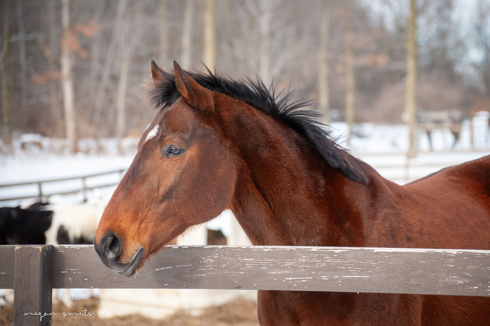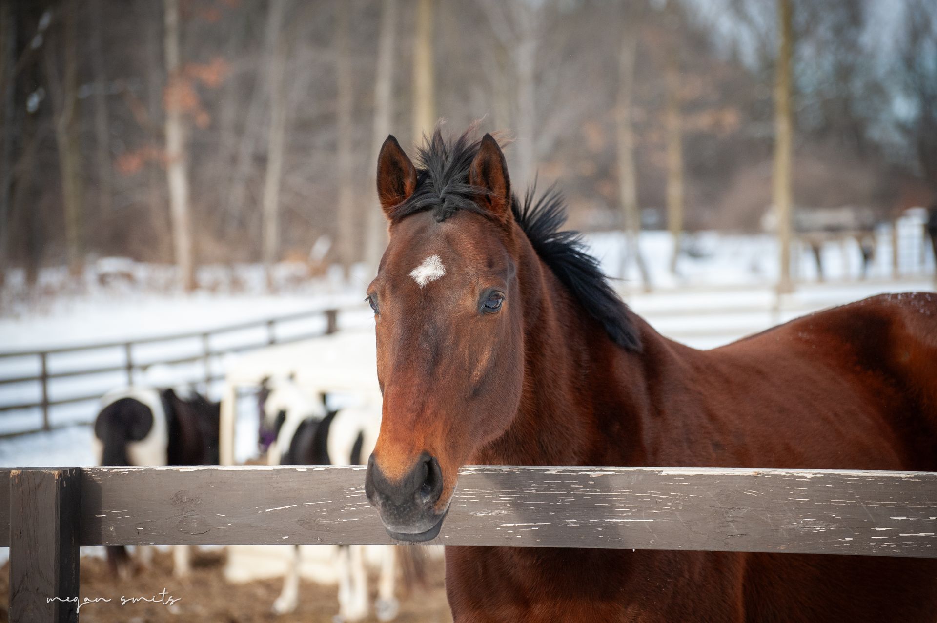 This sweet senior mare has quickly become a barn favorite. She arrived underweight, with neglected feet, and blind in one eye—but from the very start, her calm and affectionate nature has shone through.