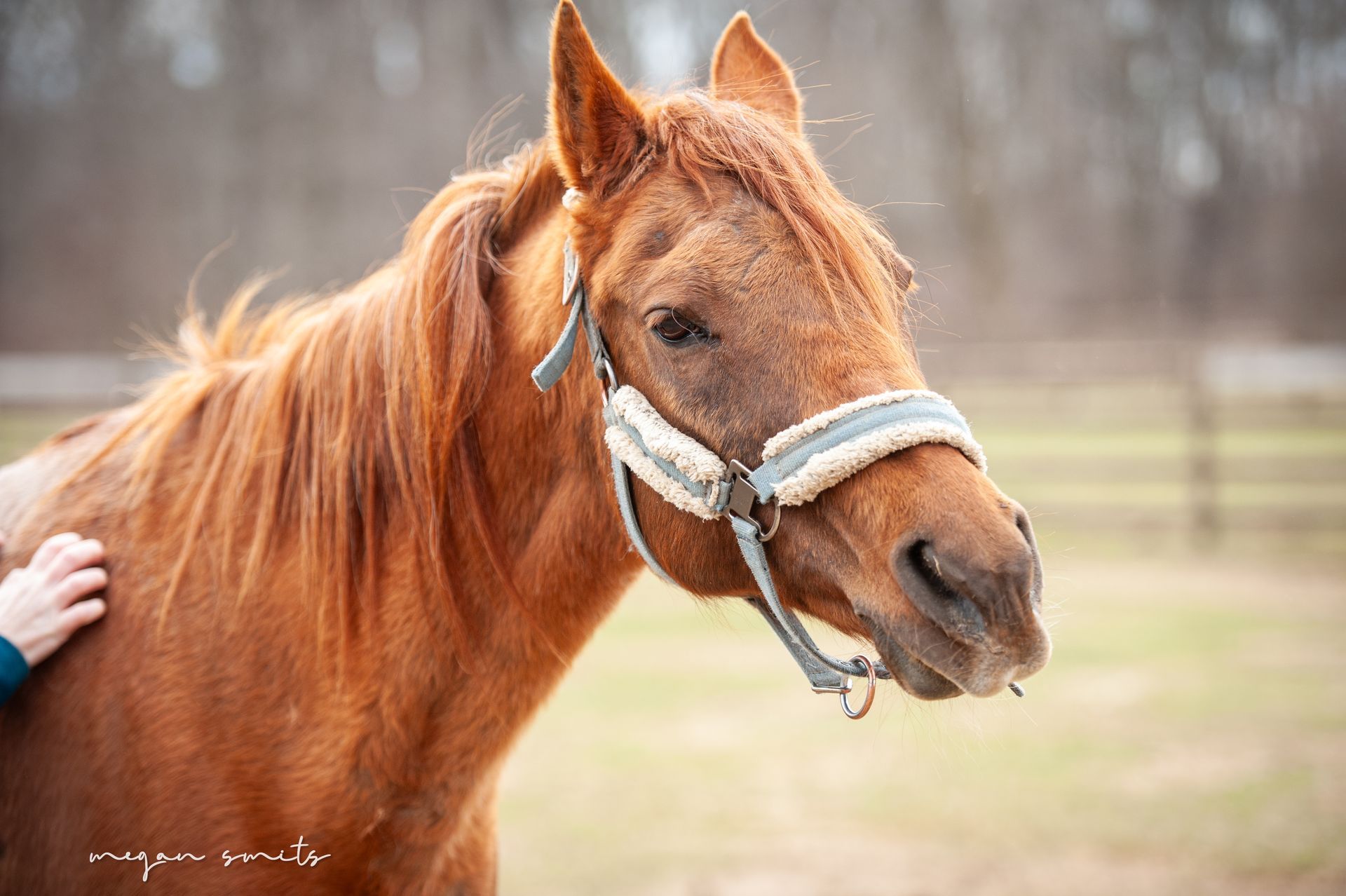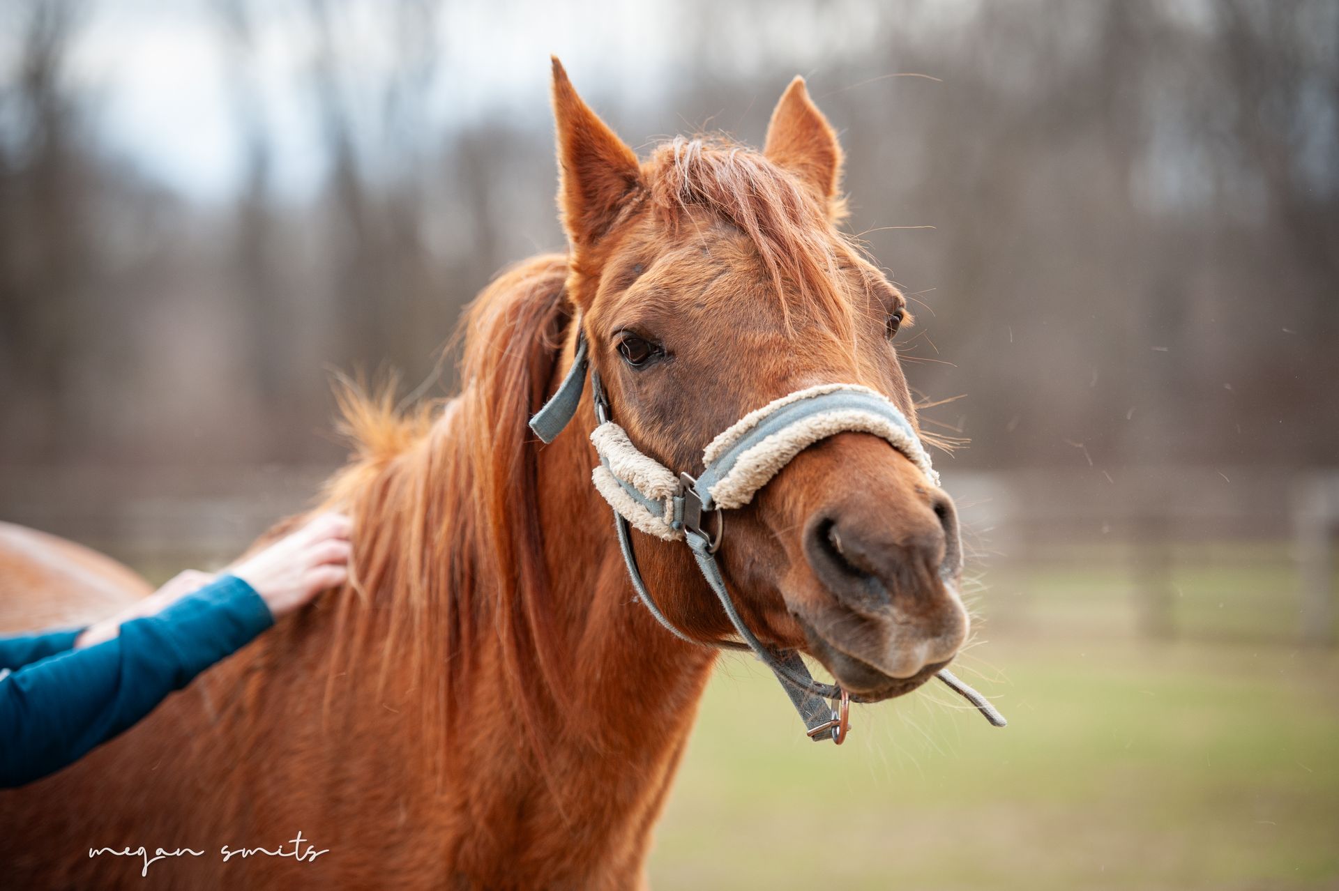 herd of geldings and gets along beautifully with everyone. Gentle and social, Bandit enjoys attention but also appreciates a calm, quiet environment. Bandit is a member of our volunteer groom team and loves spending time with his grooms and going for walks.