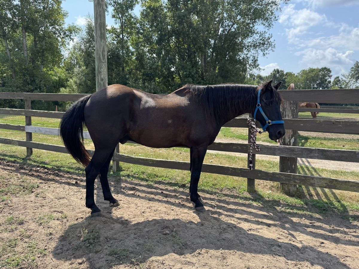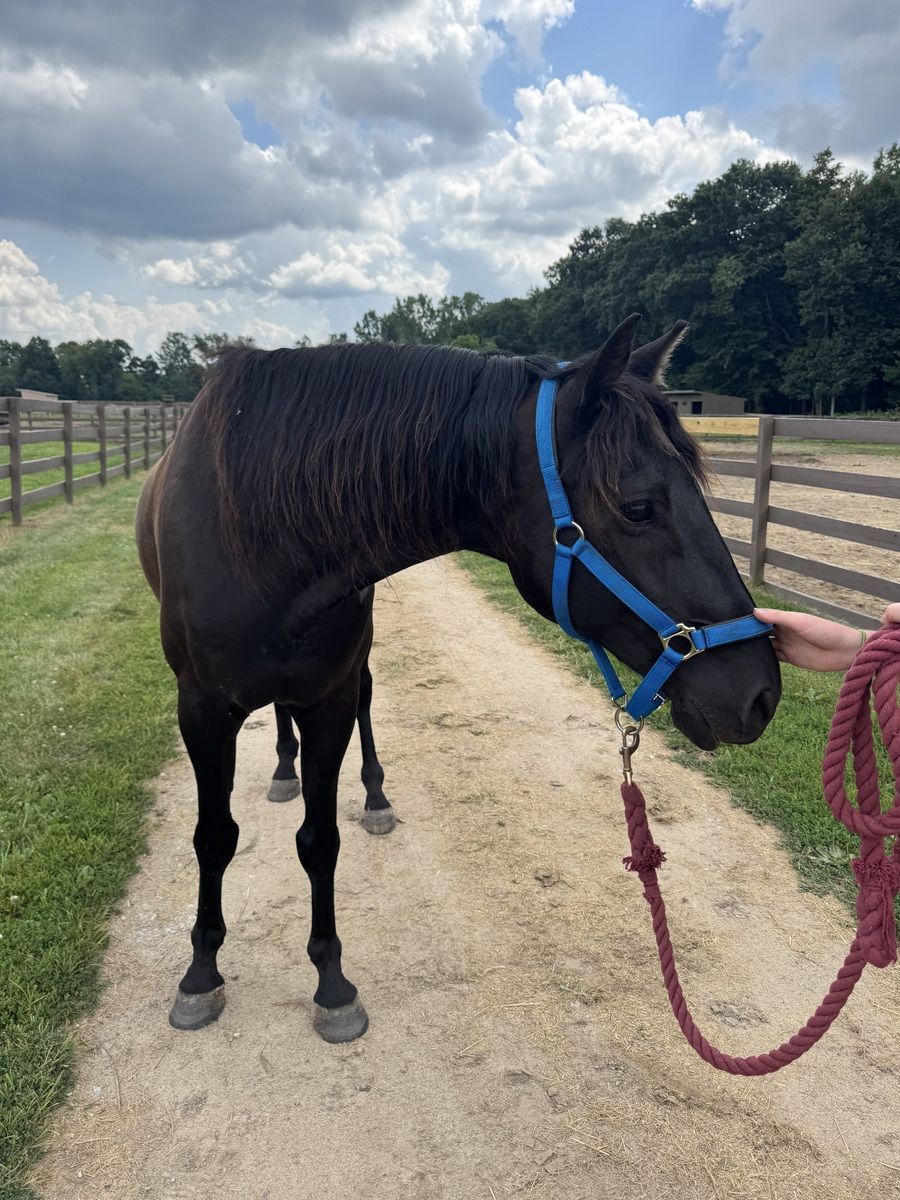 Diago is one of those once-in-a-lifetime horses whose sweetness leaves a lasting impression. At 25 years old, this stunning black gelding still turns heads with his shiny coat, wavy mane, and the most adorable little ears you’ve ever seen. But it’s his gentle, puppy-dog personality that truly sets him apart.