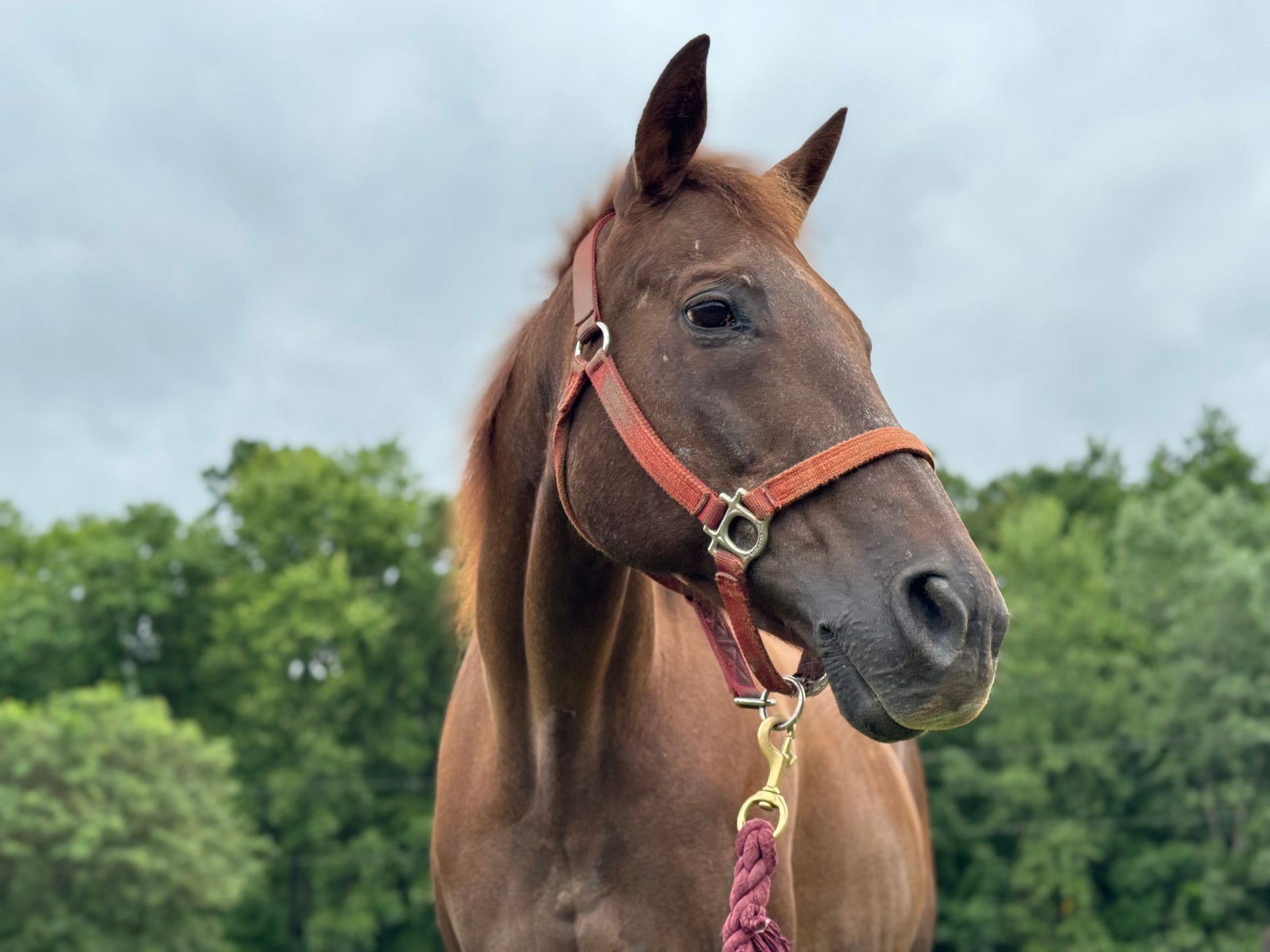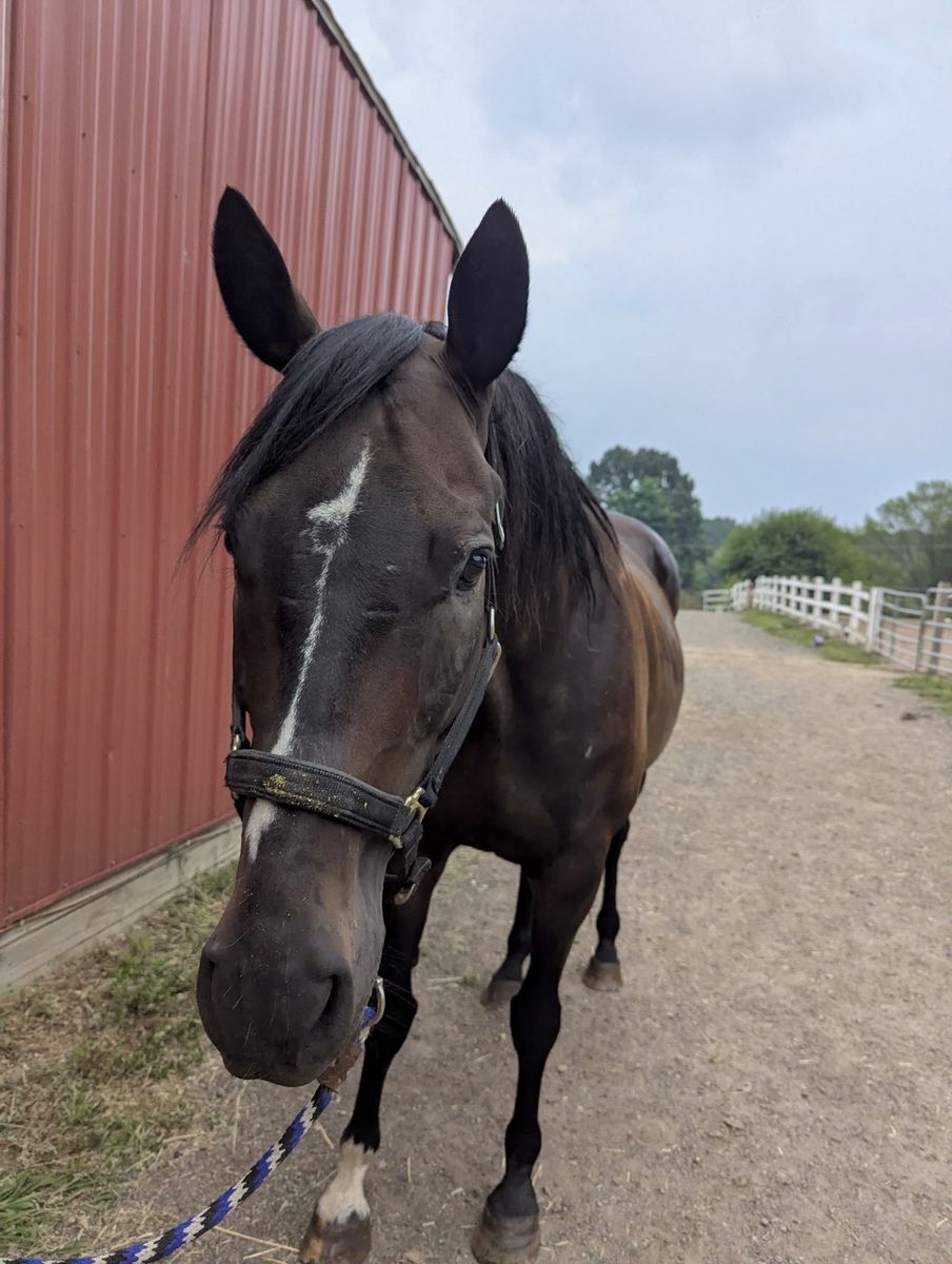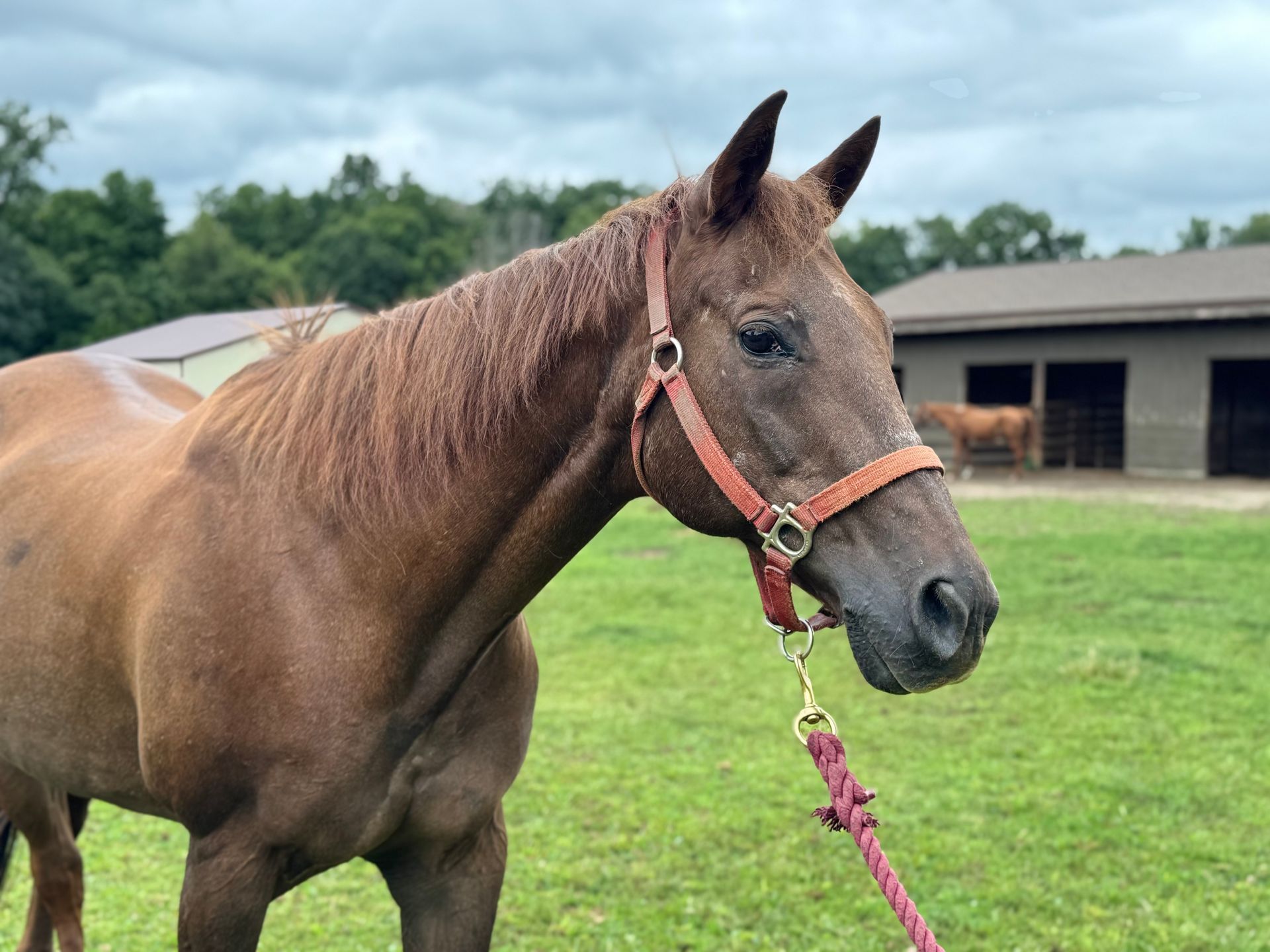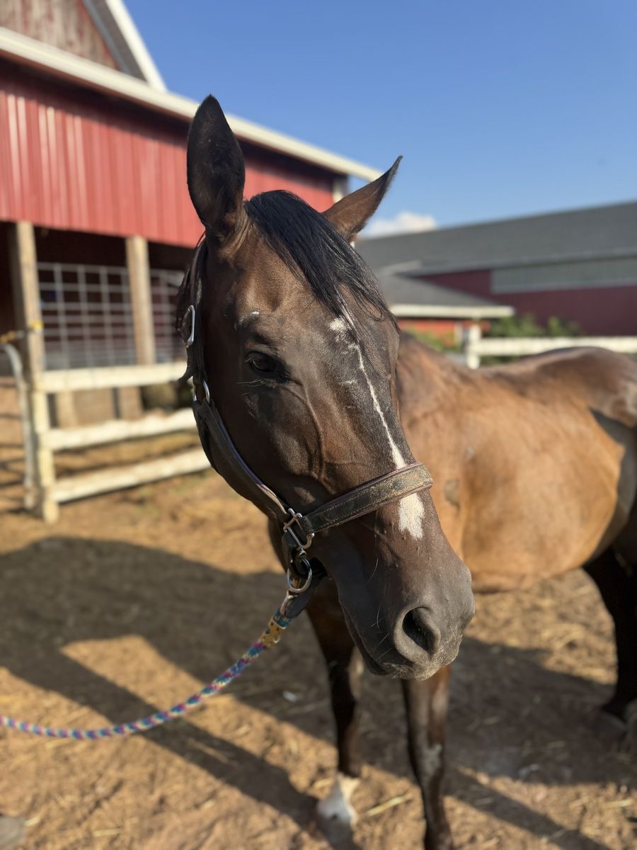 Meet Maverick, a remarkable off-track Thoroughbred whose journey has taken him from the racetrack to a well-deserved retirement. He is sound in the pasture but no longer comfortable being ridden- and is available as companion only
