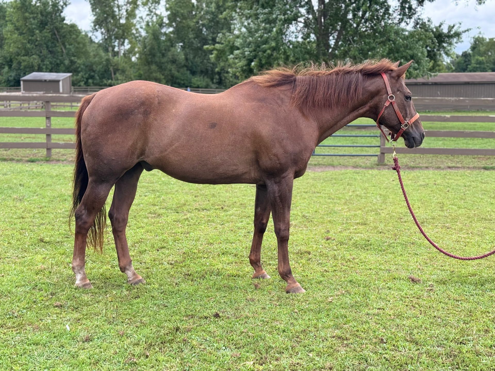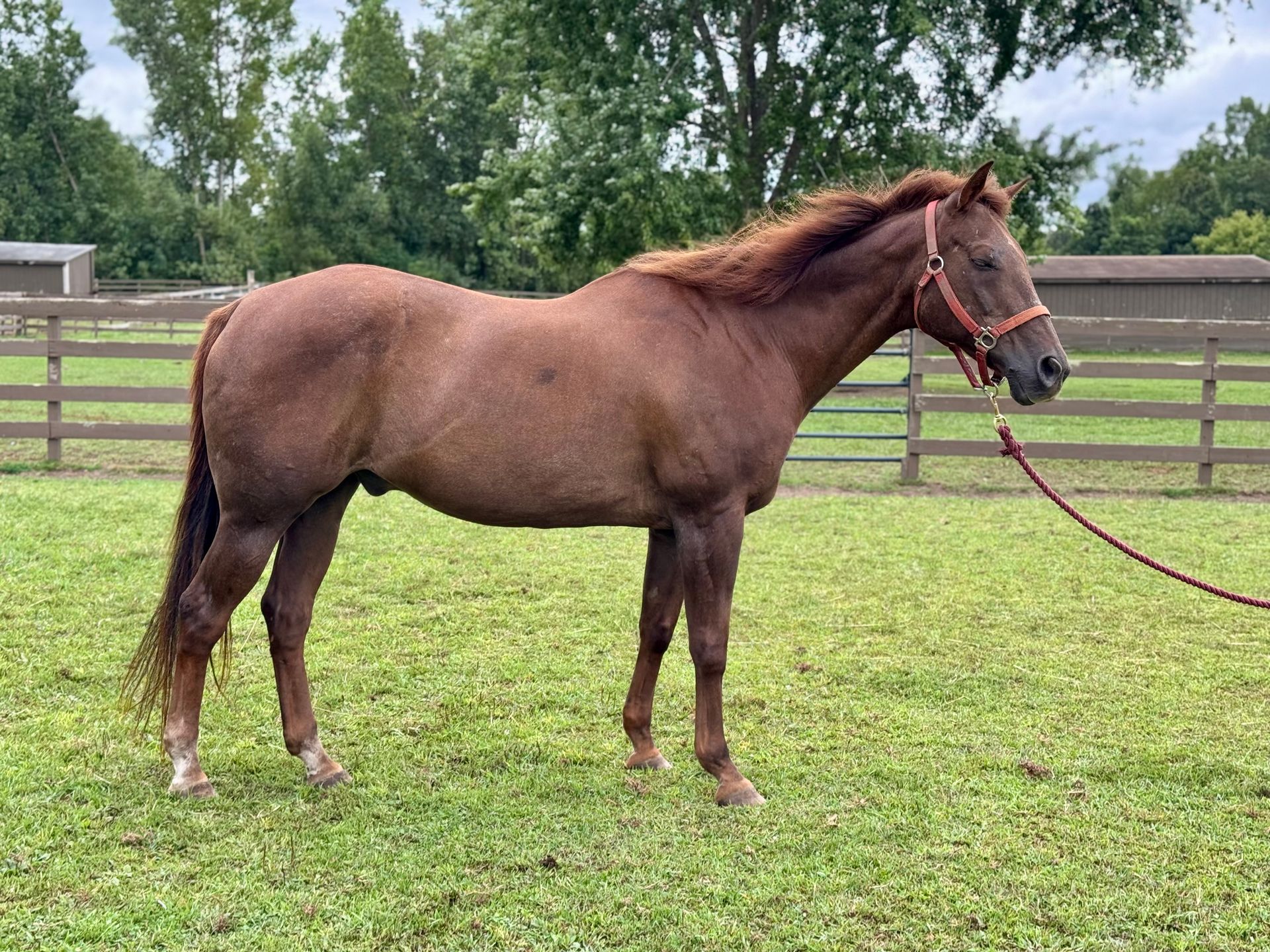 Here’s the deal: Dolly-Sue is a great pasture companion, not a project or performance horse. She can bolt in stressful situations — and not like, a dainty “oopsie” trot-off… more like, “new personal best in the 100m dash.” So she’s not a match for kids, beginners, or showing.