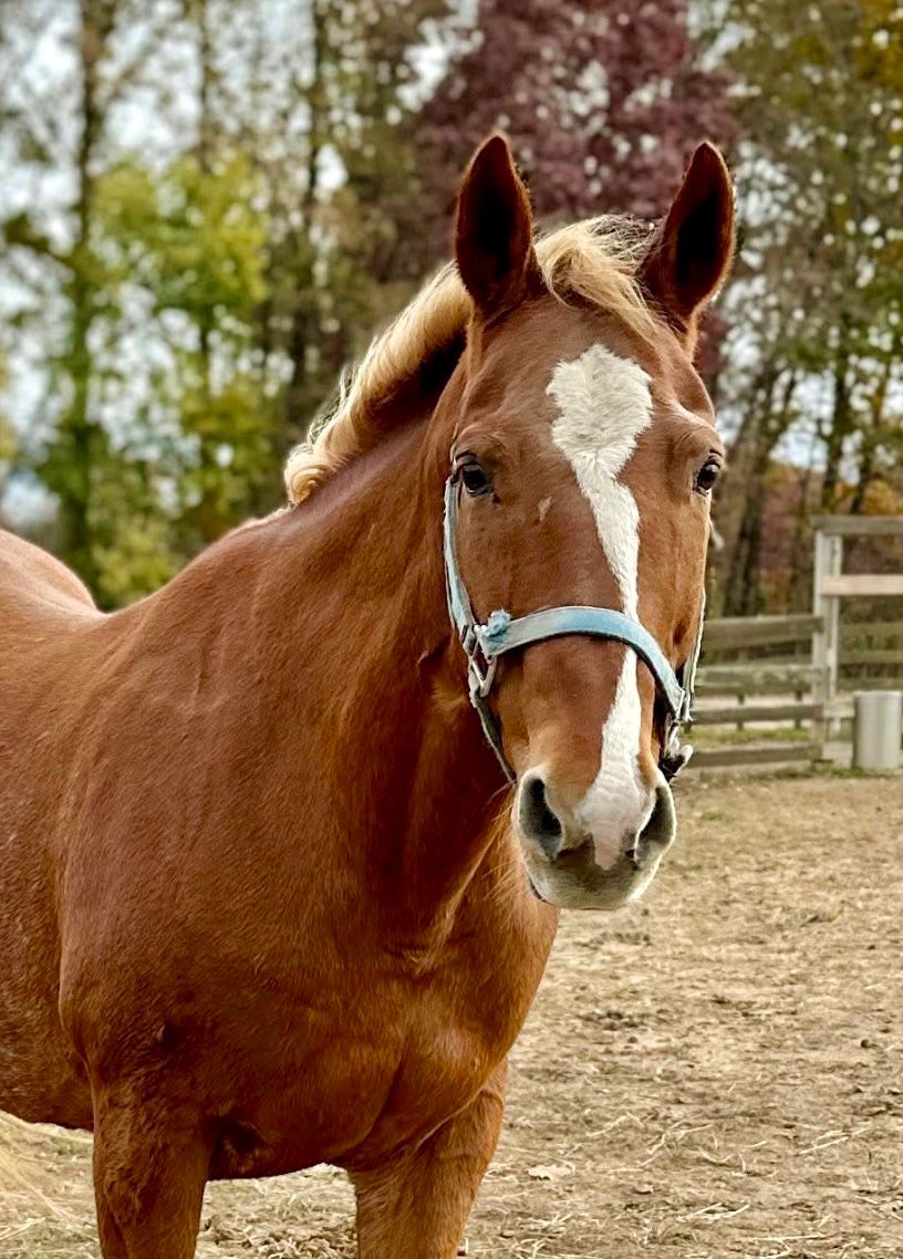 He’s the kind of horse who seems to smile when getting attention He has a long history of being ridden, our riding evaluation showed that he could be the perfect partner for pony rides, lead-line adventures, or light, easy rides with small adults or children. But is not up for heavy riding any longer. With a lifetime of experience behind him, Red is ready to share his wisdom with the next generation of horse lovers. He does best on soaked feeds, daily NSAID & front shoes to keep his navicular & age-appropriate arthritis comfortable — a small price for the love and calm presence he brings.