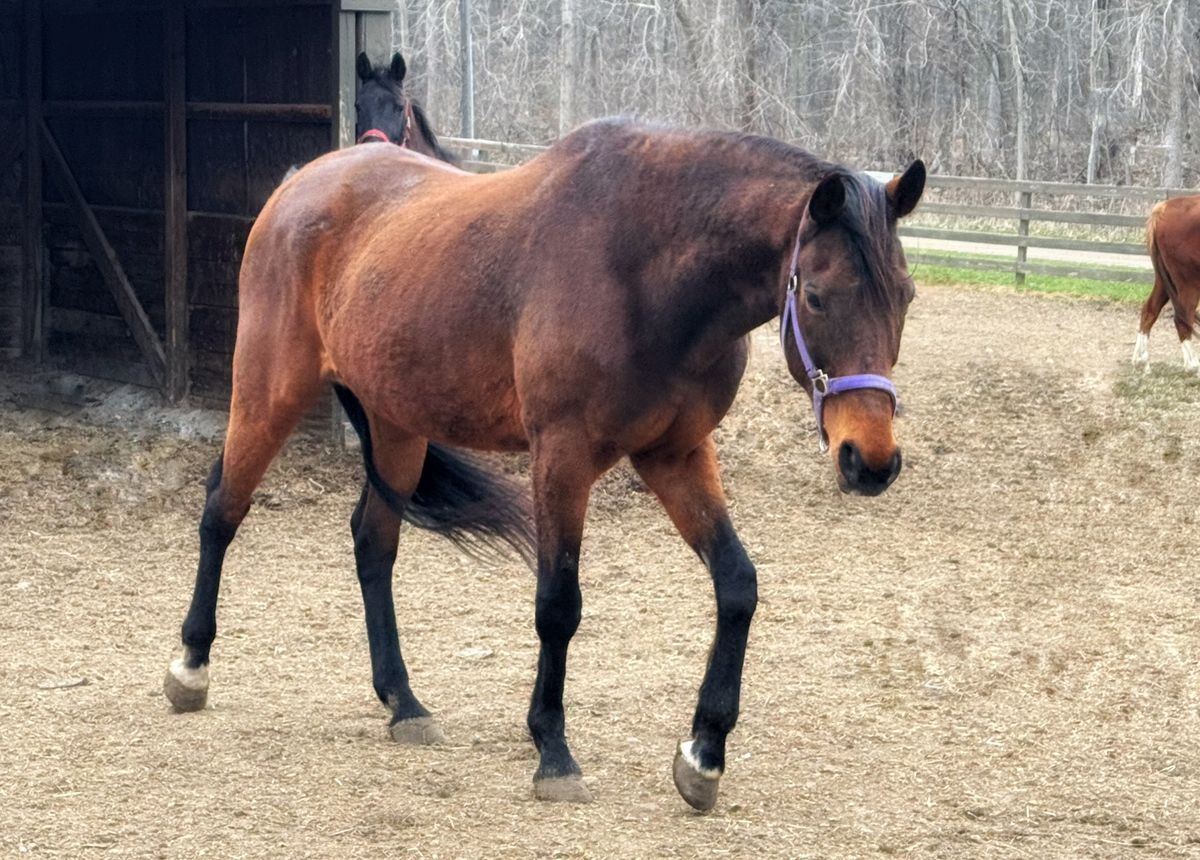 Due to her persistent ability to exit the situation, along with some soundness issues under saddle, she is being adopted as companion only