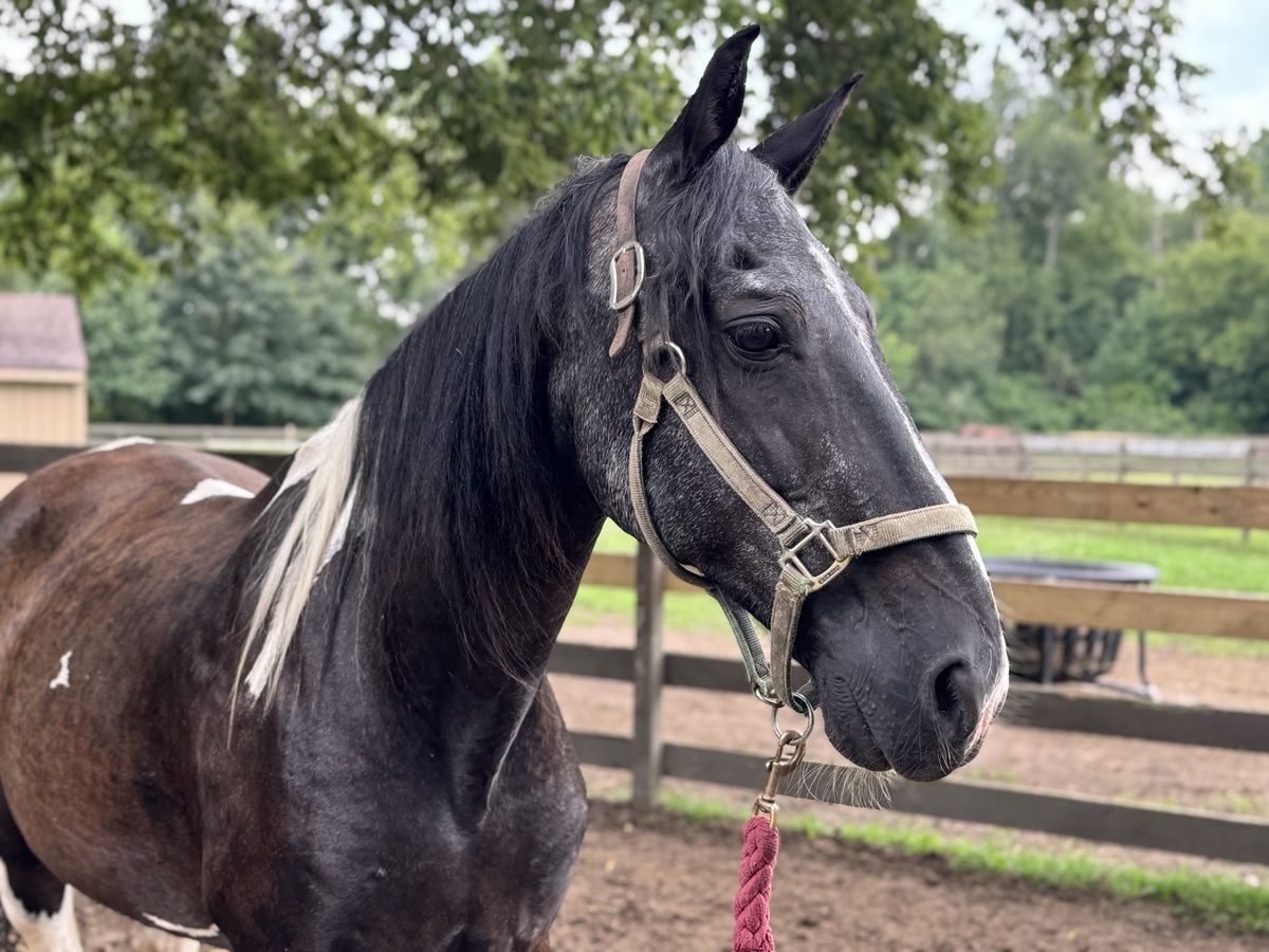 Diago is wonderfully well-mannered — he leads quietly, ties and cross-ties, stands like a pro for grooming and baths, and is always polite for the vet and farrier. He absolutely loves people and thrives on connection and companionship. Diago can be stalled or live outside 24/7, and does best in a herd of geldings.
