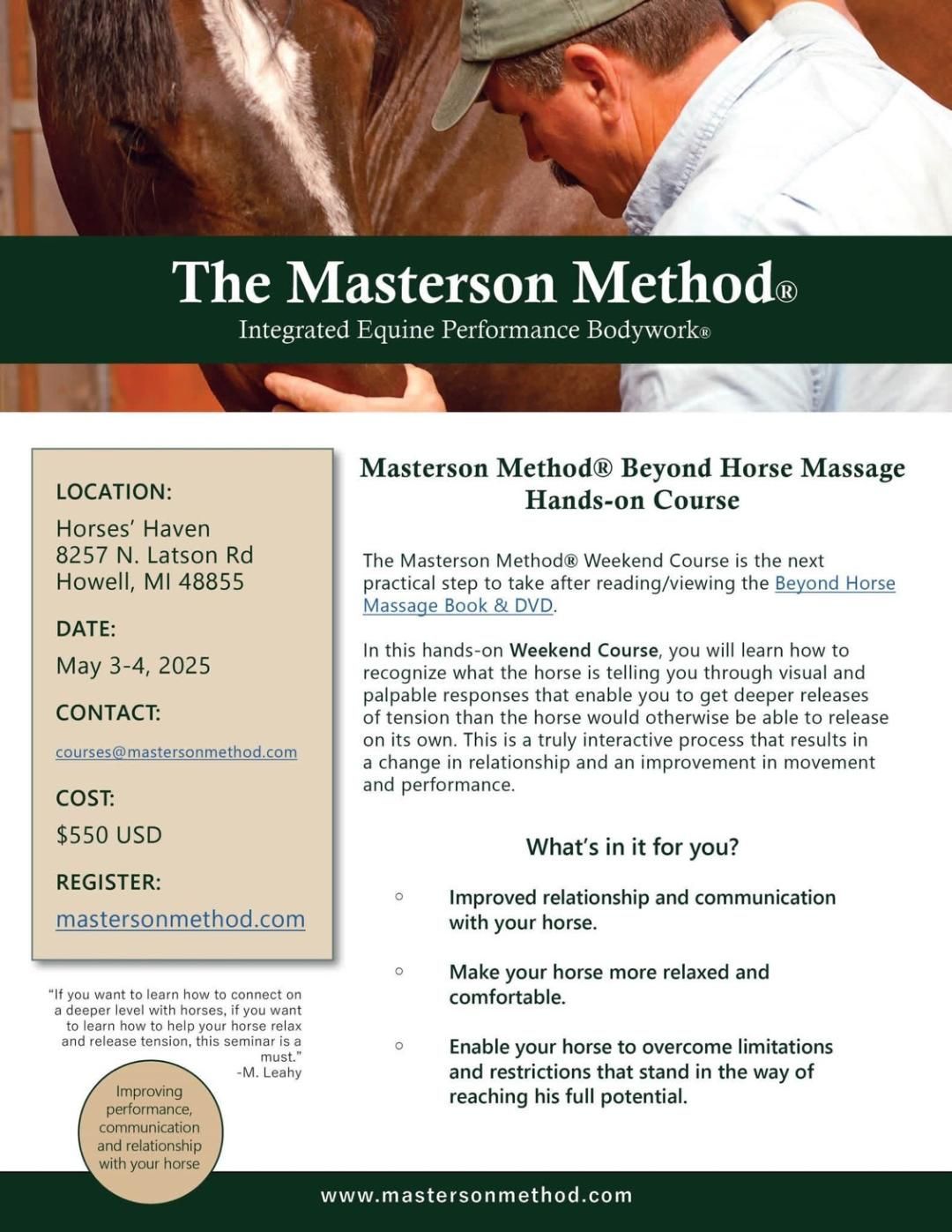 Masterson Method Beyond Horse Massage Weekend Course
