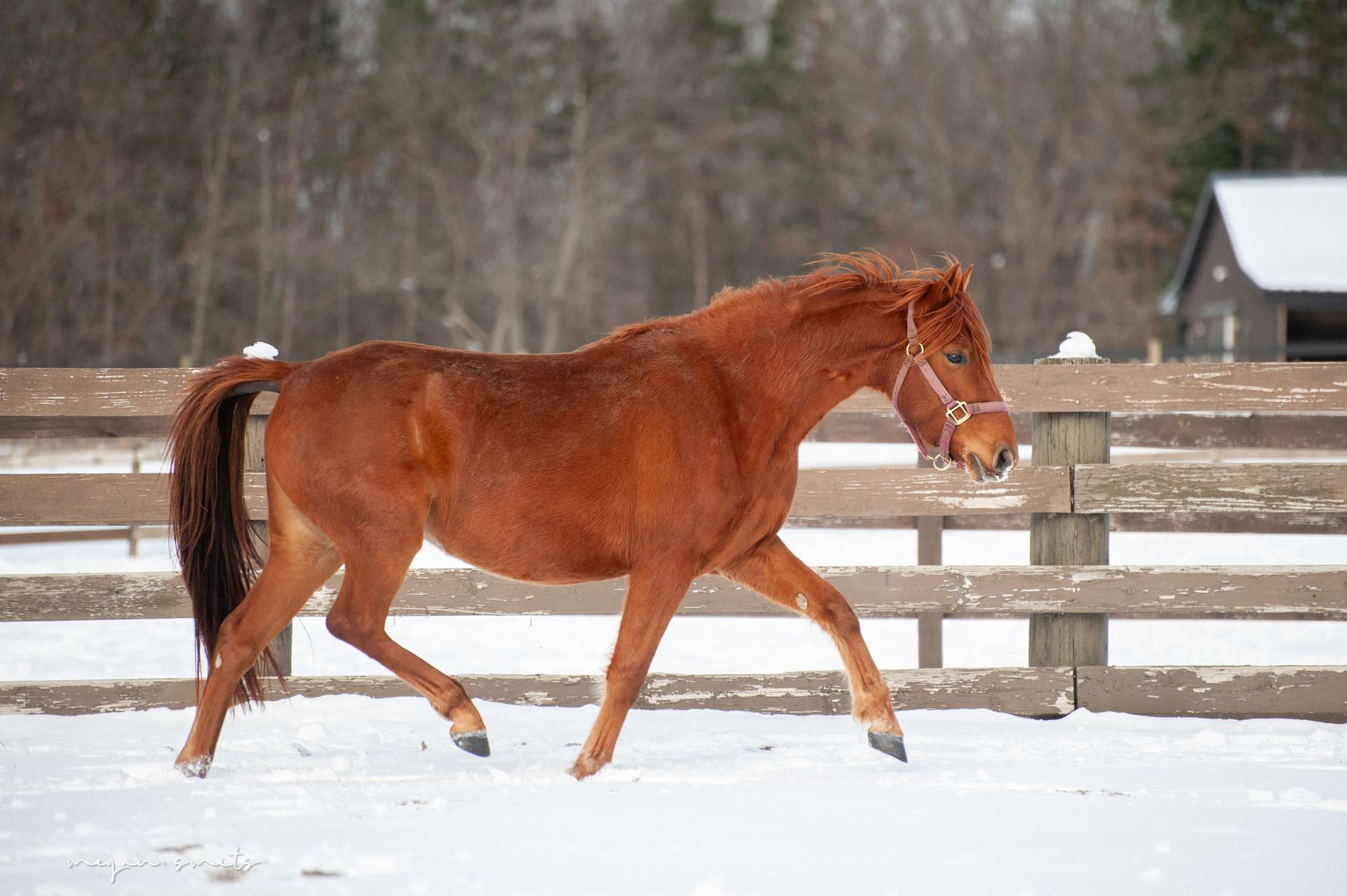 As with all ponies, she requires proper pasture management in order to maintain her health. Mariah did not have any formal under saddle training in her younger years, but does enjoy being groomed. She has Cushing’s disease and requires Prascend along with soaked feed, though she can still graze and eats hay along with soaked hay cubes